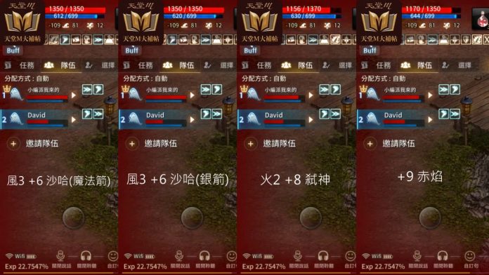 | 風靈3階 +6沙哈之弓(魔法箭) | 風靈3階 +6沙哈之弓(銀箭) | 火靈2階 +8弒神者之弓 | +9赤焰之弓 | |