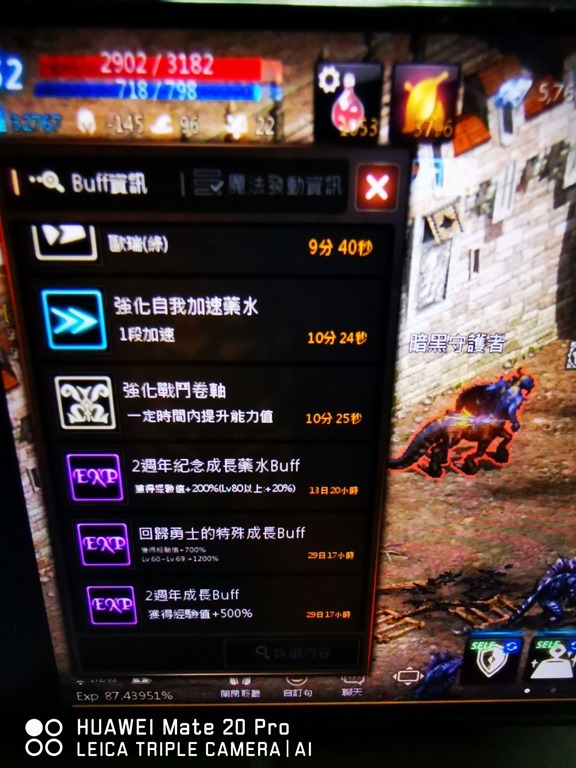 進一步以經驗值來觀察,幻羽星塵擊殺一隻海音外為龍龜的經驗為 92897,小編用純金葉測試為 36680 差距相當明顯,過由於兩者機體額外的經驗值獎勵有些差異,因此小編就不再實際精算,不過從上圖的 buff 效果圖來看,三種藥水的效果的確是可以疊加上去。