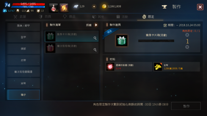 ▲ 每天可製作娃娃卡、變身卡片箱各一個。