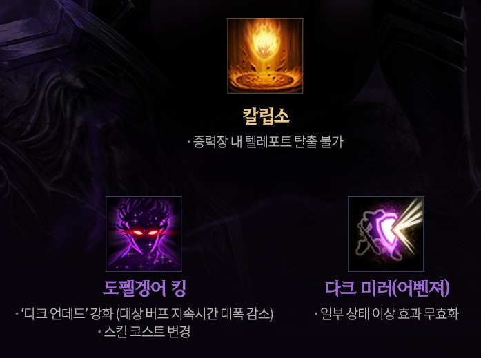 隨著暗黑騎士再度覺醒,這次 The Darkness 版本暗騎加入更多攻擊與坦度技能,次元刀、暗黑波動、變形怪首領提高傷害,無效區域(復仇者)、卡呂普索、暗黑之鏡(復仇者)提高抗傷能力。下周會再公布更詳細的技能細節,以下提供本次更新技能參考