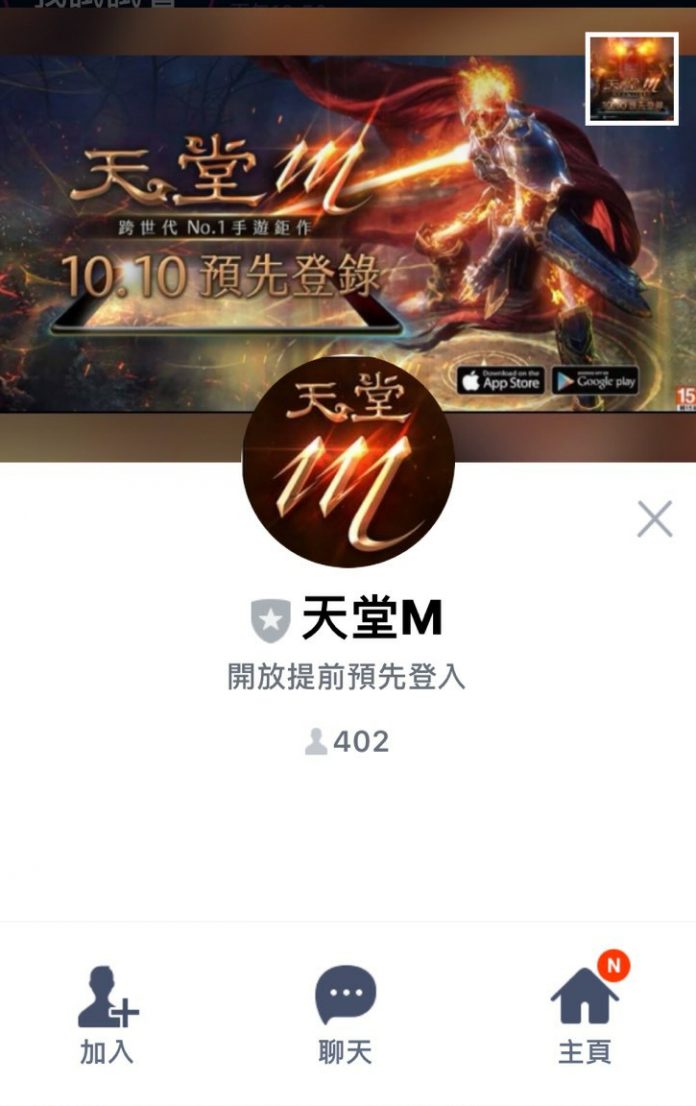 天堂M台灣代理遊戲橘子宣布將在 10.10 台灣國慶日凌晨舉辦天堂M的預先登錄活動引來許多玩家關注,有心人士也在這時候伺機而動,日前有人假冒官方在 LINE 上創立天堂M官方帳號,以提前預先登陸帳號為誘因欺騙不知情的網友加入,《天堂M大補帖》向官方查證確認該帳號非官方所設立,請玩家們勿受騙上當。