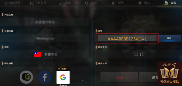 遊戲中兌換方式點選 設定→資料 在序號欄位輸入後按確認,獎勵就會直接放到角色的背包中。