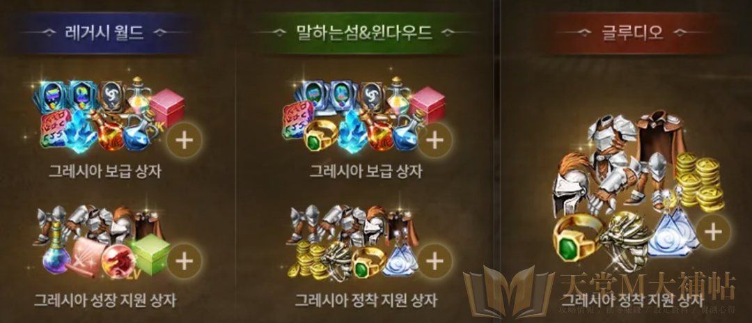新服「古魯丁」的獎勵與新篇章服相同,但僅有其中的定居支援箱,提供適合新玩家起手的亞丁系列武器、防具、商城飾品、活動裝備、金幣箱子… 等。