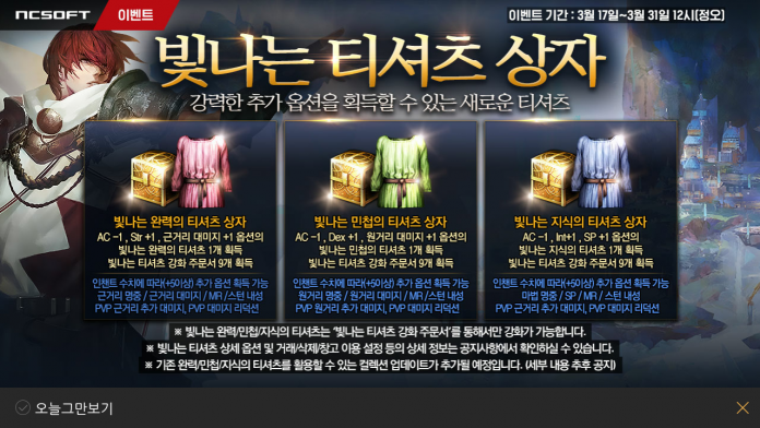 天堂M的遊戲商城除了販售耳環、戒指、符文外,今天更新後加入新裝備「閃亮的T恤箱」(빛나는 티셔츠 상자 구성품)!有別於一般裝備,這件商城T恤強化後不但會防禦增加,過安定值後會有更多額外的能力加成,而且售價只賣 400 藍鑽,差不多直接讓商城的T恤被打入冷宮,但小編覺得 NCsoft 應該有什麼謀略在後頭 ….