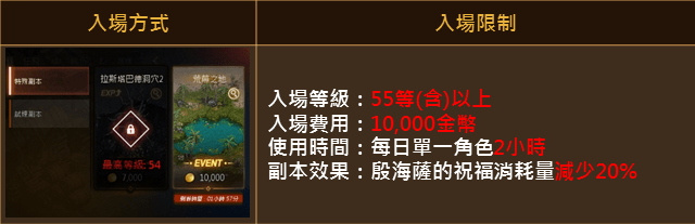 ※荒蕪之地入場限制為55等(含)以上,入場費用10,000金幣。