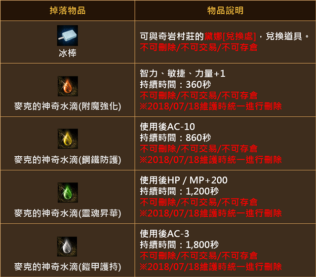 ※未使用的冰棒、麥克的神奇水滴,將統一於07/18(三)維護時刪除。