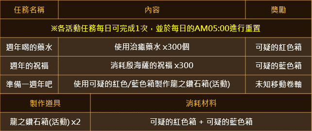2. 消耗可疑的紅色箱及可疑的藍色箱完成製作龍之鑽石箱(活動)的任務,即可獲得【未知移動卷軸】1個。