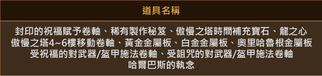 ※未使用的傲慢之塔相關活動道具將於2018/08/08(三)維護時統一進行刪除。