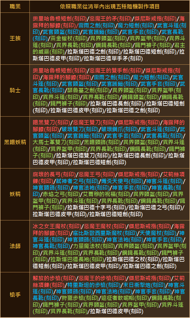 ※活動道具【雪壁的製作秘笈(活動)】將會依照職業顯示對應,可100%成功隨機製作項目。