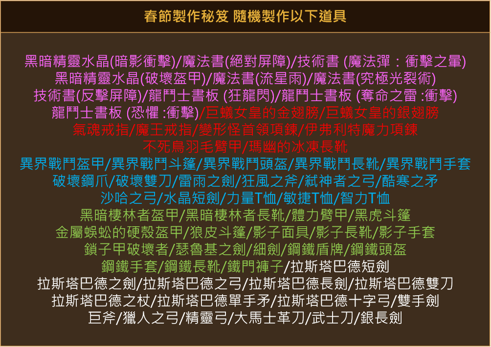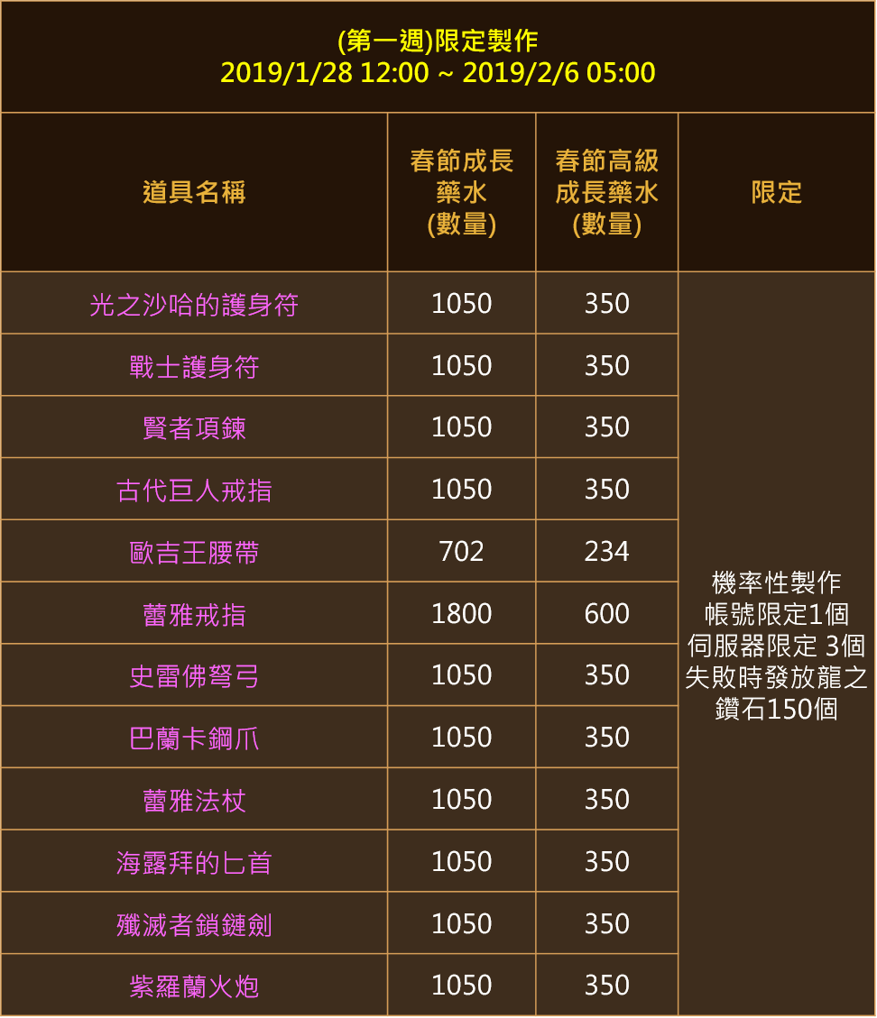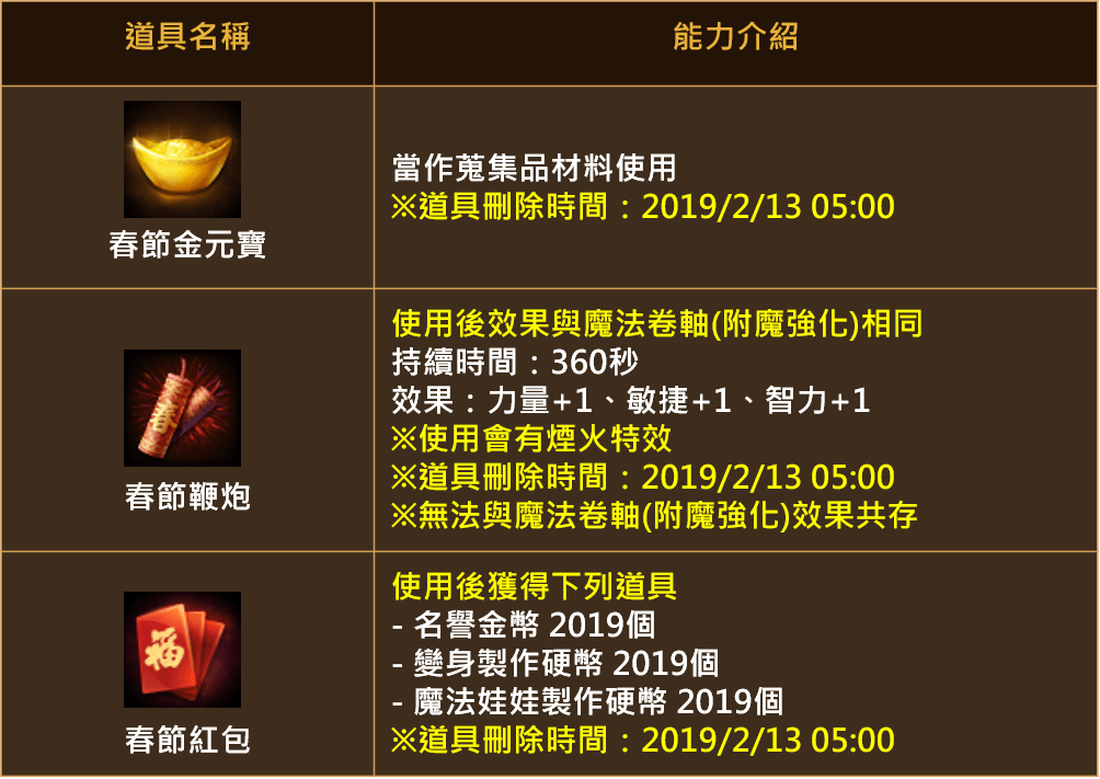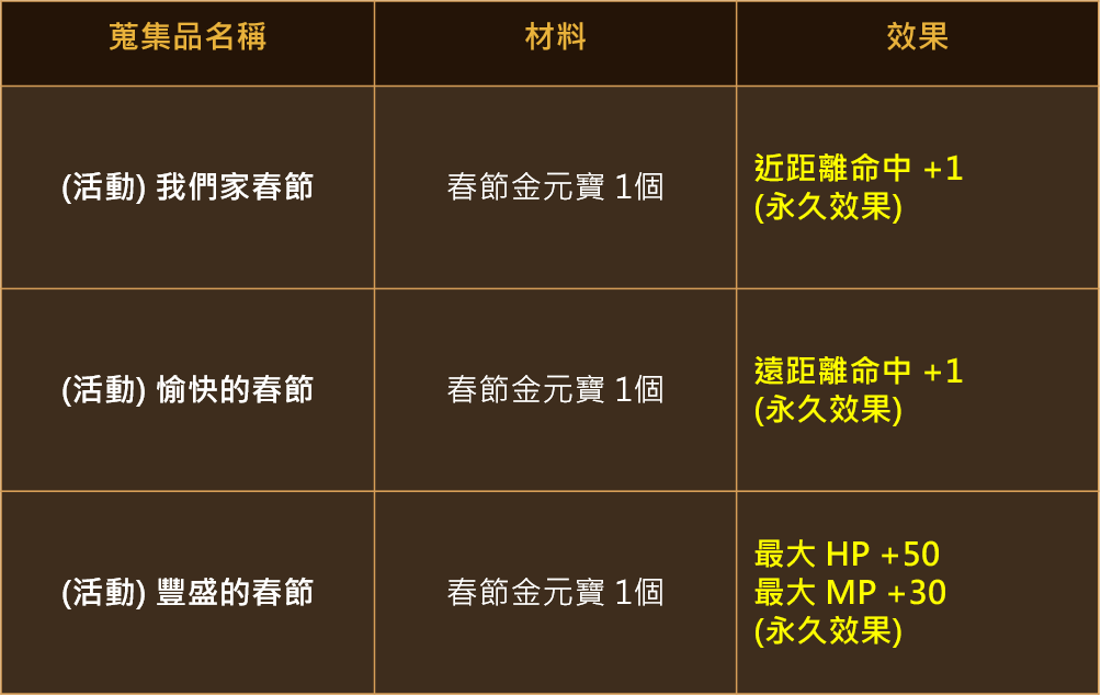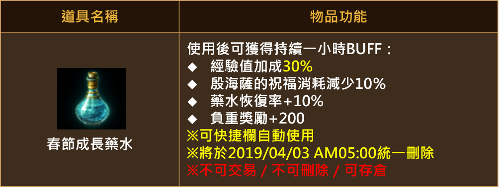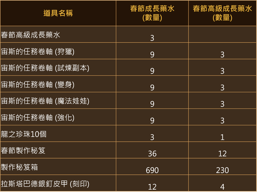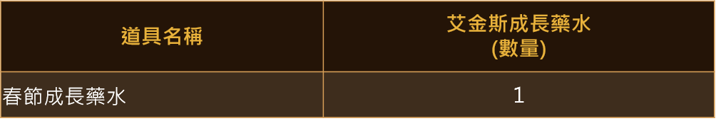 ※可使用「艾金斯成長藥水」1:1兌換「春節成長藥水」。