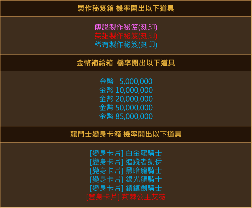 新練龍鬥士想要衝等就先課新的禮包吧!這次的禮包內的經驗藥水直接給 700% 的經驗值,衝等速度絕對是嚇嚇叫,而新賣的春節組合包更直接給祝福和詛咒的防武卷、蒐集品金元寶(可換永久效果),趕快去看看吧!