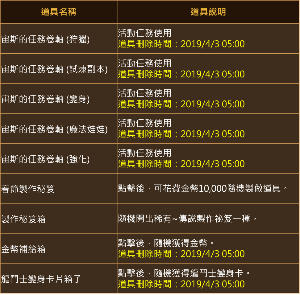 更新後,「艾金斯成長藥水」將無法再做為掃蕩試煉副本的材料,必須使用「春節成長藥水」才能進行掃蕩,但可用「春節成長藥水」1:1兌換「艾金斯成長藥水」。