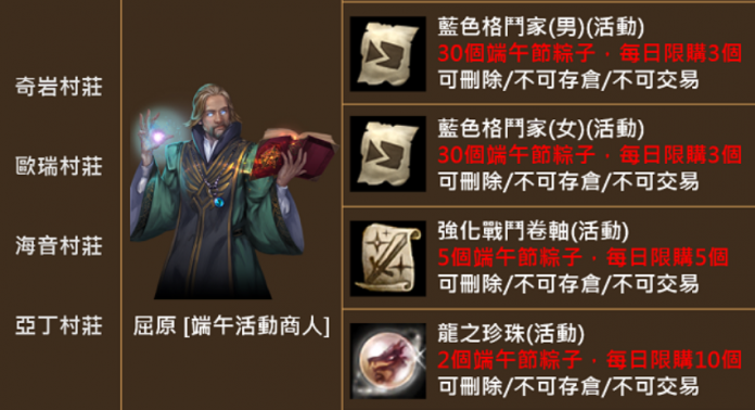 2. 可使用端午節粽子與屈原[端午活動商人]兌換台灣限定英雄變身卷軸與相關活動道具。