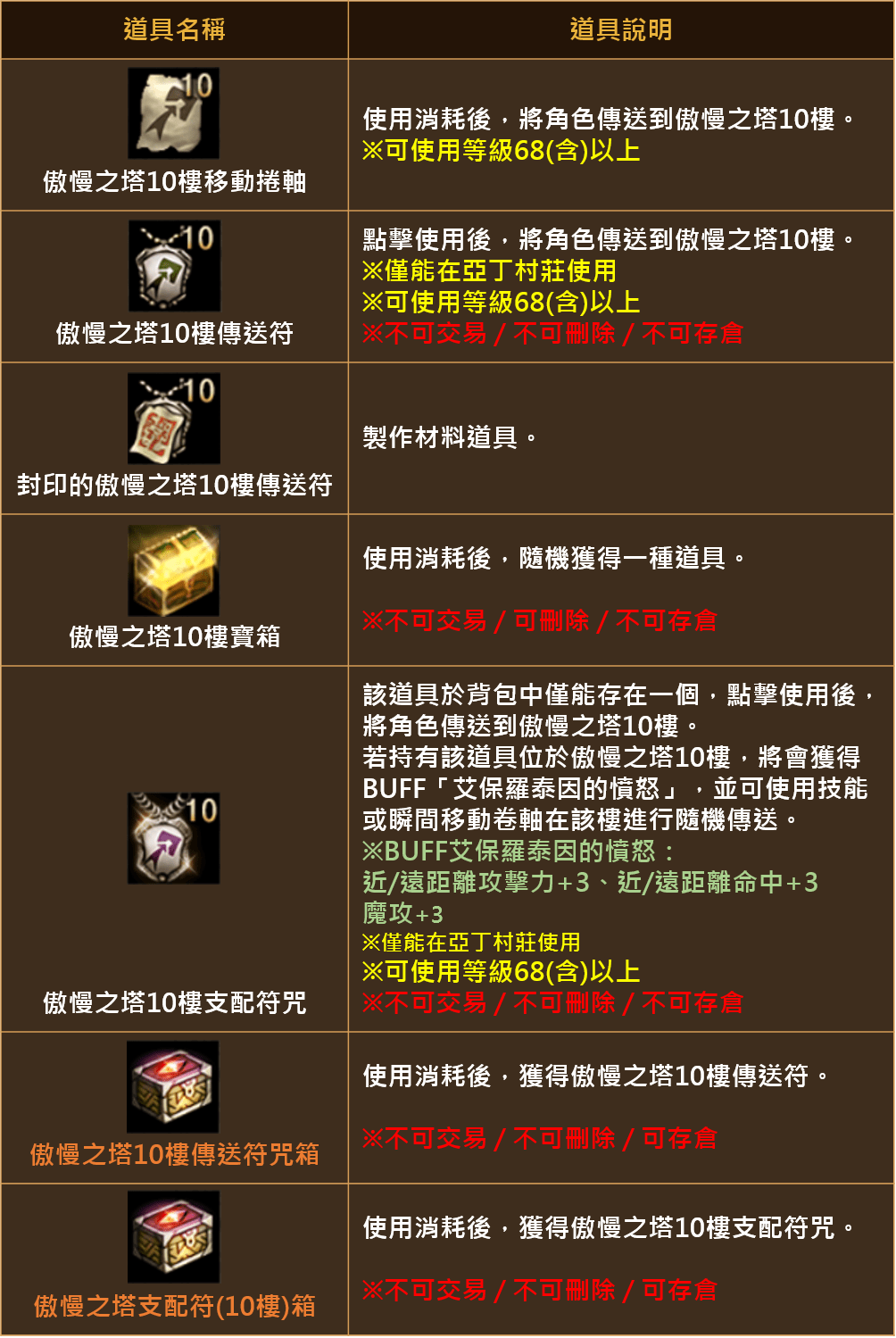 ※傲慢之塔任務卷軸系列需68級以上(含)才可進行