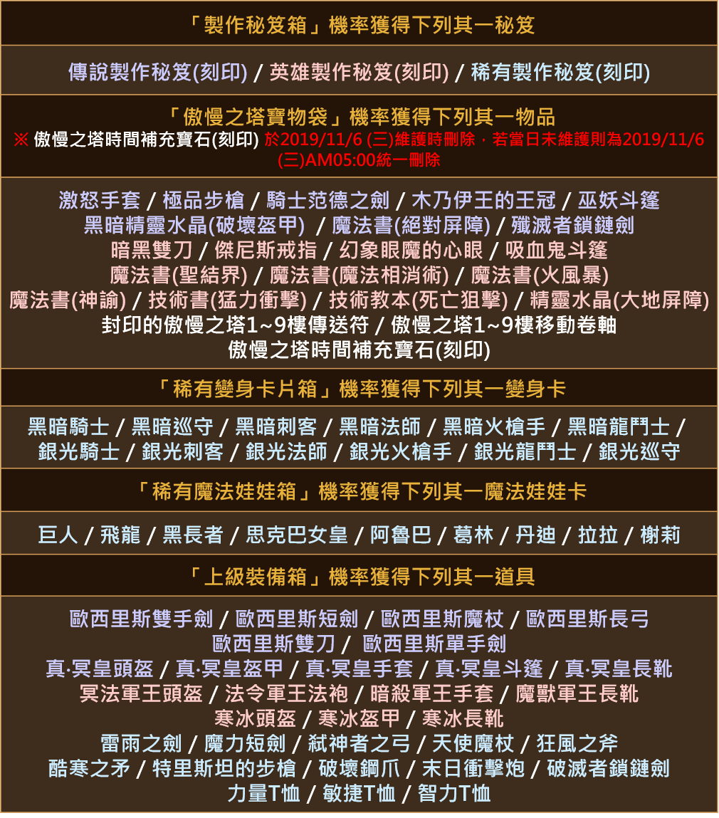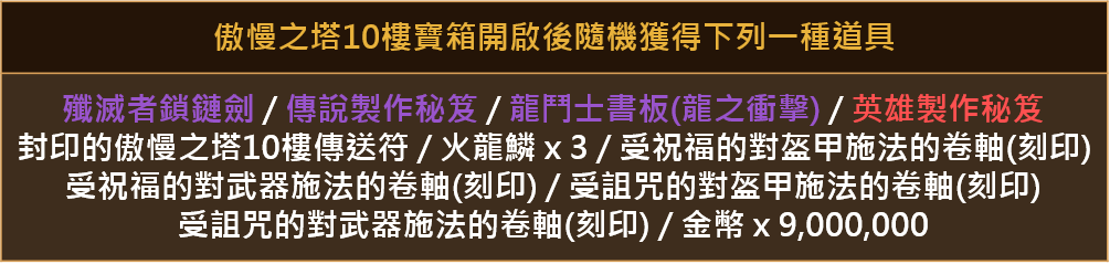 傲慢之塔開放第10樓層,並開放第10樓層BOSS-傲慢的烏格奴斯,讓玩家可前往挑戰狩獵獲得獎勵道具。