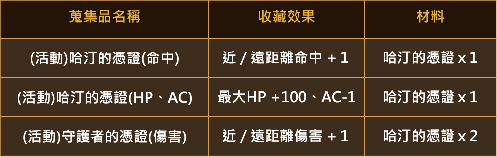 活動期間內至「商城→活動&強化」可購買「哈汀的聖物箱(印章)」「哈汀的聖物箱組合包(憑證)」等,「哈汀的聖物箱」開啟後保證獲得「哈汀的聖物袋」,還有機會獲得英雄武器或傳說防具喔!