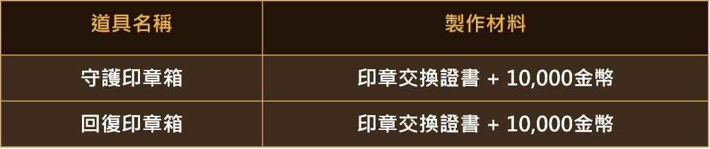 ※將移除使用「國王的硬幣x140+金幣x140萬」製作的「智慧符石(刻印)」及「體力符石(刻印)」製作品項,已獲得的「智慧符石(刻印)」及「體力符石(刻印)」將無法進行強化。