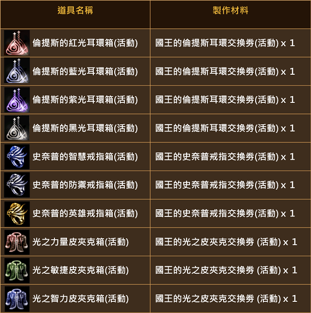 這次活動請大家千萬要卯起來打!尤其是無課小課玩家想要衝飾品就趁活動,26 日更新後會推出「亞丁國王的感謝宣言」活動,在活動場地裡面可以打到大量各式商城裝備兌換券(包括耳環、戒指、徽章、光之皮夾克)以及變身、娃娃抽卡,掉落機率根據韓版經驗可說是非常豐富,錯過很難有下次。另外,簽到內容也更新了。