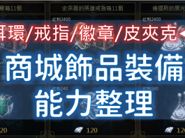 史奈普戒指/倫提斯耳環(含祝福)、守護徽章、光之皮夾克最新能力一覽表