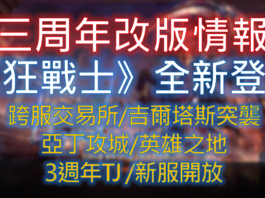 (韓)三週年改版狂戰士登場!3週年TJ/跨服交易所/吉爾塔斯/亞丁攻城/英雄之地/新伺服器