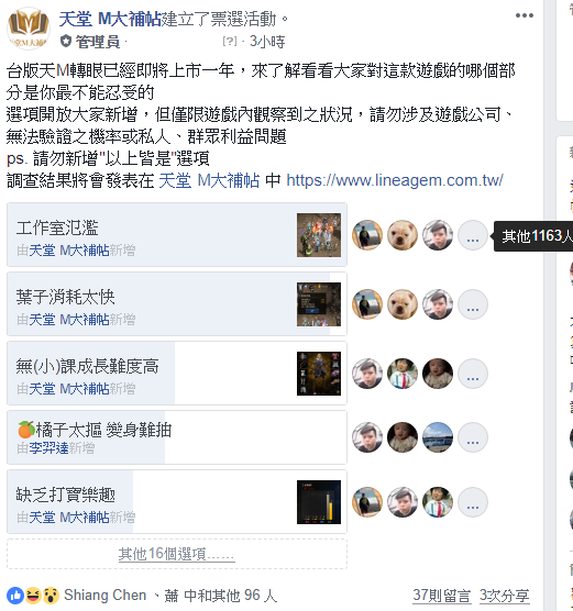 天堂M中文版上線至今已經即將屆滿一週年,相信玩家們對於天堂M從當初的期待到現況的感受多少都有一些落差,很多玩家們不是花不起錢,只是找回當初的感動所付出的代價與遊戲體驗無法得到對等結果,但抱怨歸抱怨,堅持下去的玩家都希望天堂M可以更好,這次小編就高調跟玩家一起們做個「滿意度」投票。
