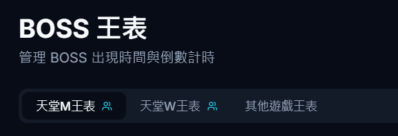- 獨立設定:支援建立多個獨立王表,您可以依據不同的伺服器、同盟或是特定地圖(如奇岩、傲塔)分別管理。