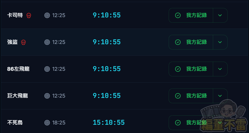 - 詳細資訊:包含死亡時間、操作人員、以及最重要的「下一次預計重生時間」。