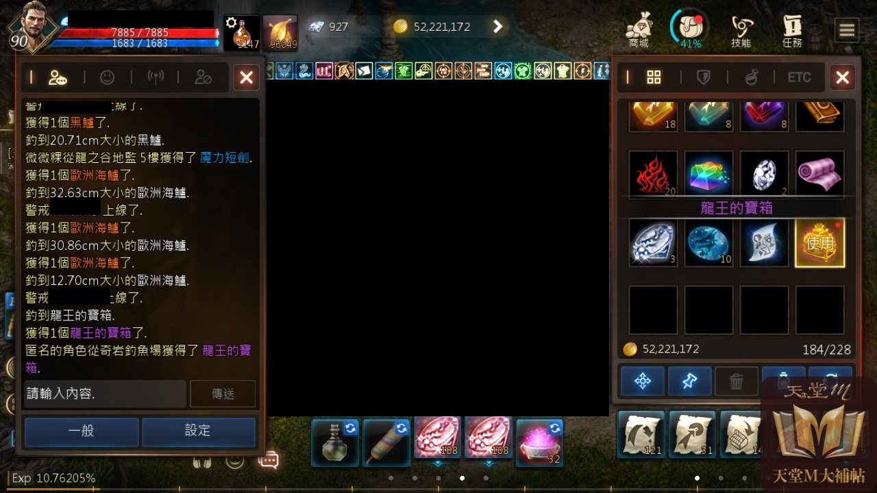 上一篇釣魚系統實測文中,網友跟大家分享了綠竿(高級釣竿)也能到到紅魚「金光暗影」的好消息,對小玩家而言可以靠運氣獲得高階漁獲無非是莫大的好消息,但今天又來自歐洲玩家的真實經歷,原來綠竿還能獲得釣魚系統夢幻道具「龍王的寶箱」!