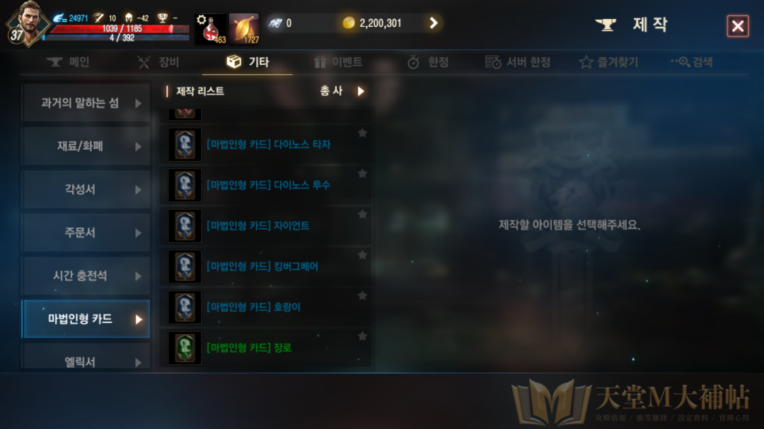 職業藍變卡每張材料為 50,000 變身硬幣,從卡池裡面看自己缺什麼,或者剛好是非本職業可獲得的卡片,依狀況製作來補。前期主要以傷害、命中、HP、防禦、魔防收藏為優先。
