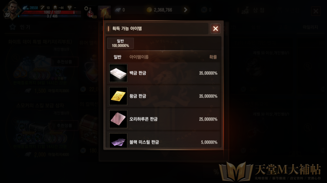 從紅利商店的「阿頓的材料箱(金屬板)」中有25%機率可以獲得,如果你剛好有閒置的紅利不知道要做什麼用途,拚拚看這個箱子(25000紅利)搞不好有機會開到,韓服開服可賣到 2000~4000 鑽不等。